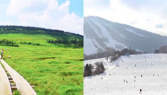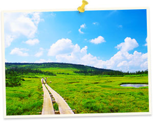 沼や湿原が多い台地状火山です。日本有数の高原植物の宝庫とも言われ、散策に適しています。遊歩道が完備されているのでとても歩きやすいです。